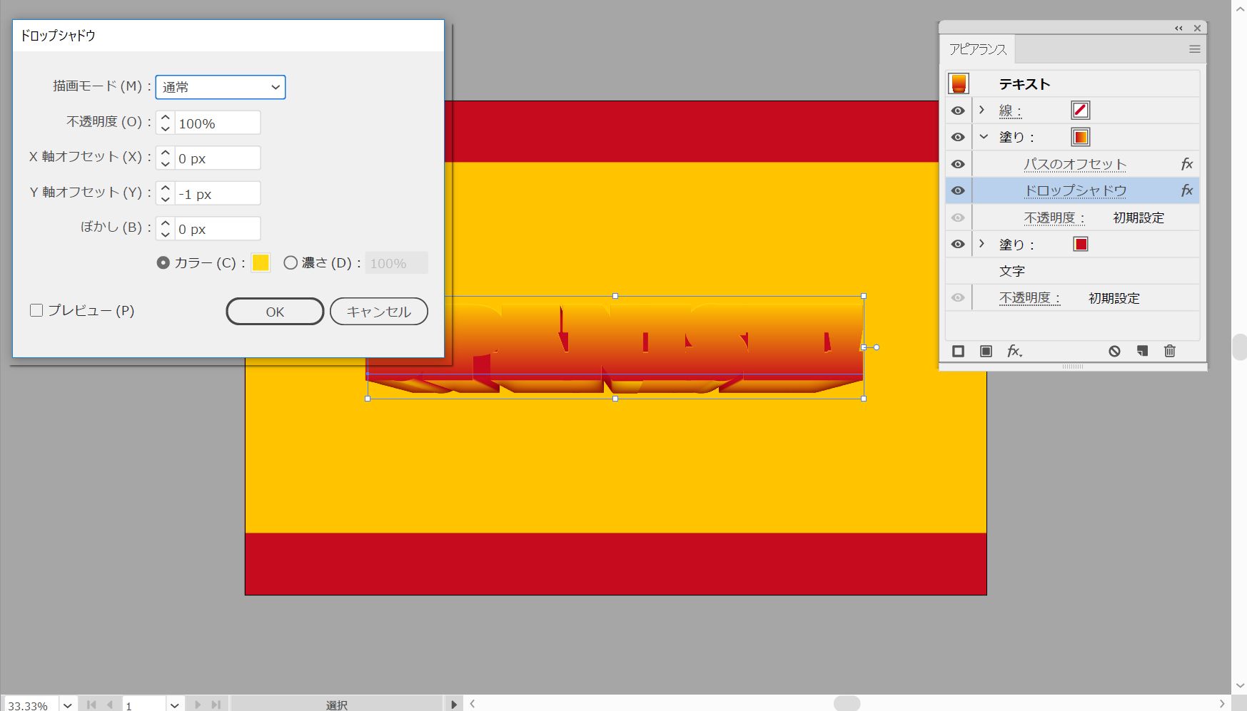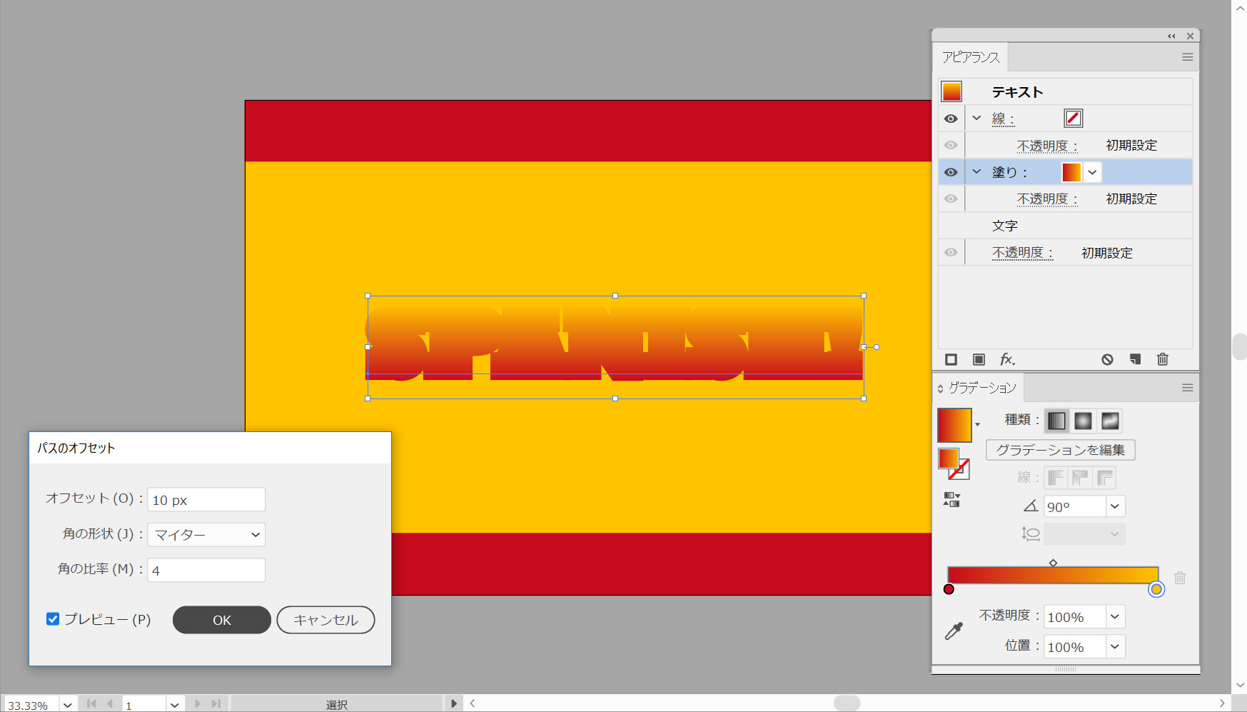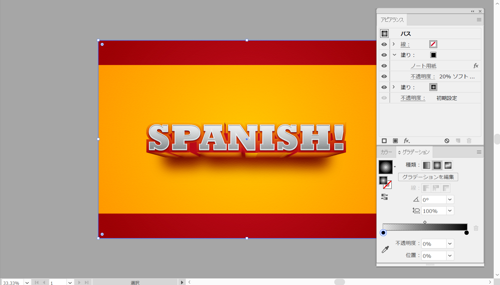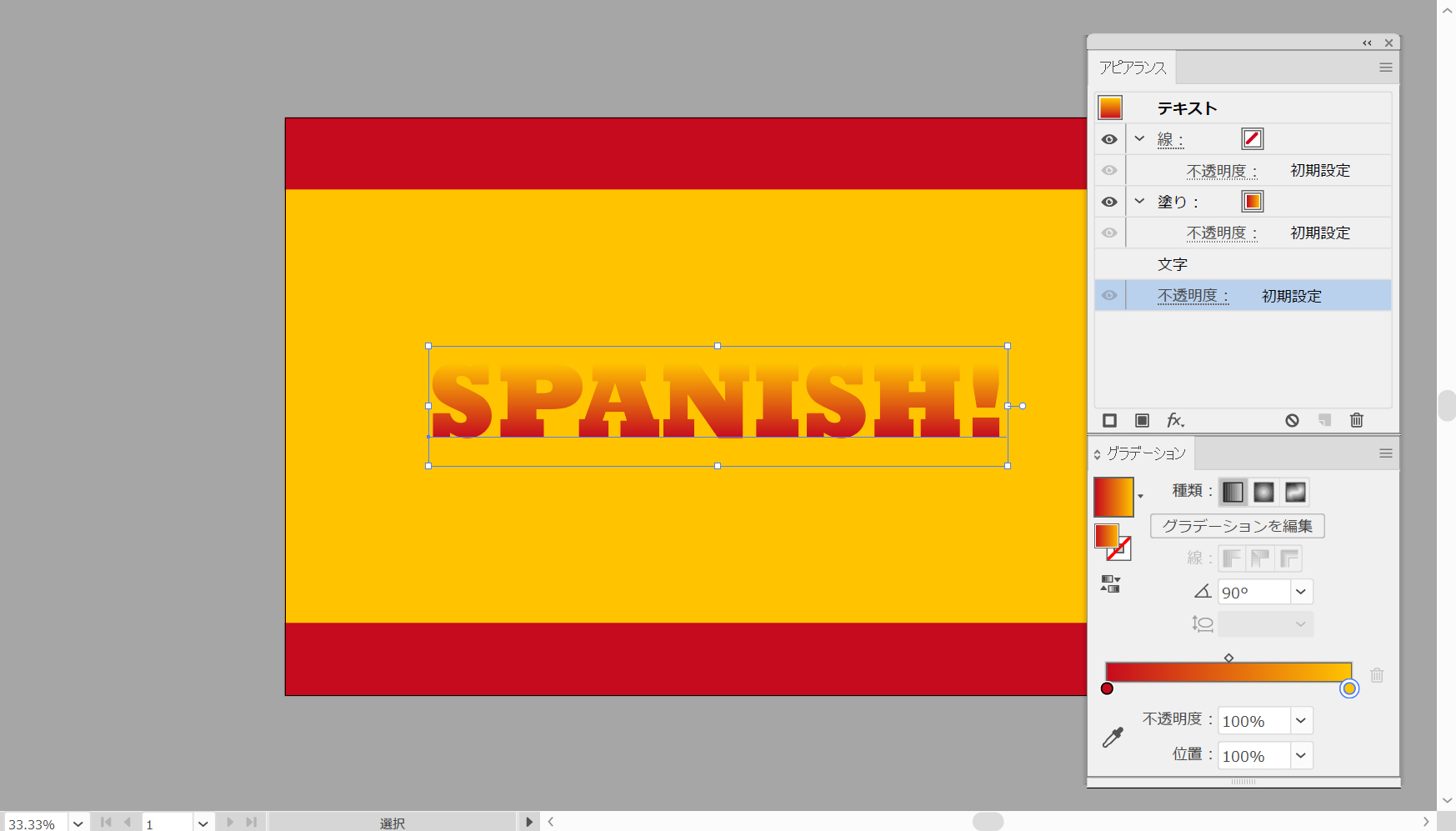 テキストがまだ選択されていることを確認して、[アピアランス]パネルに注目します。