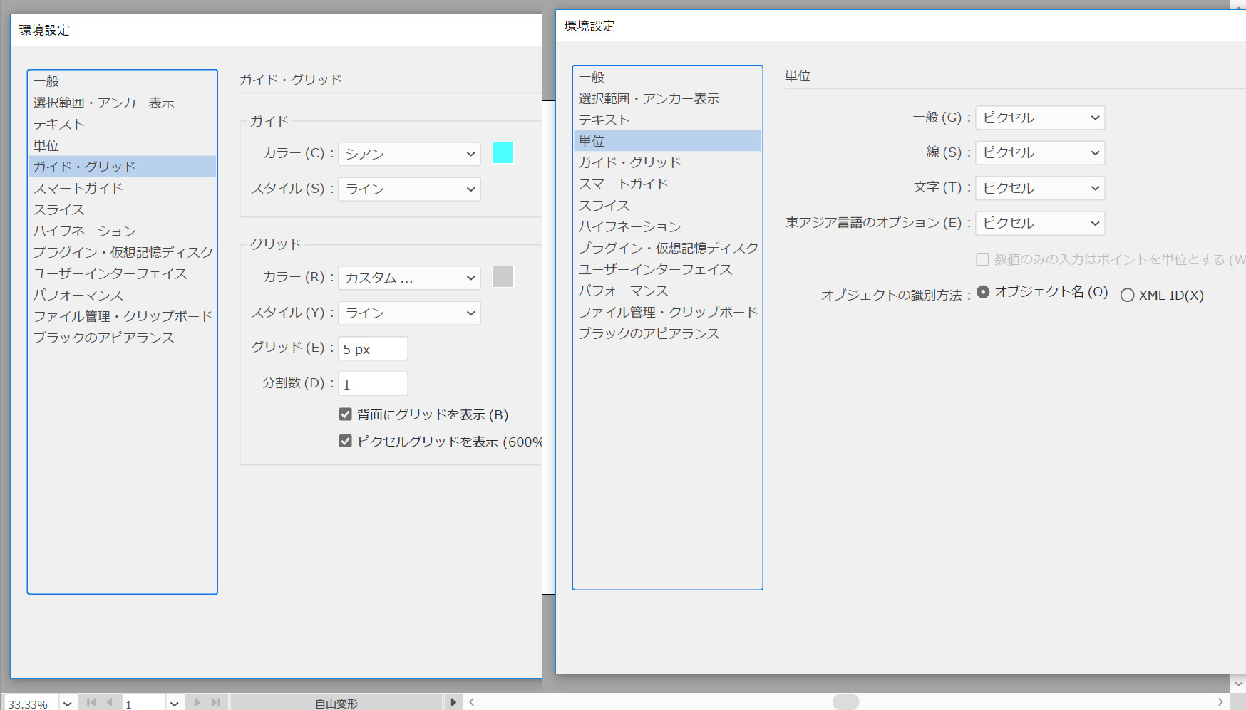 また、情報パネル(ウィンドウ>情報)を開いて、図形のサイズと位置を示すライブプレビューを表示する必要があります。編集>設定>単位から、測定単位をピクセルに設定することを忘れないでください。これらすべてのオプションにより、作業速度が大幅に向上します。