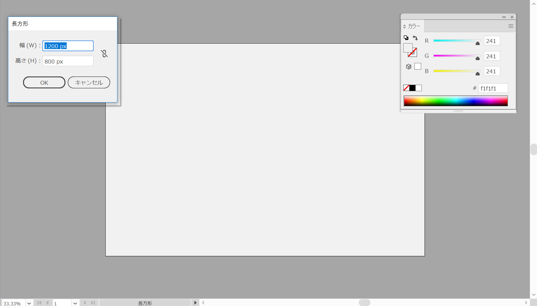 長方形ツール(M)を選択して、ツールバーの境界線から色を削除します。塗りを選択し、色を「#f2f2f2」に設定します。