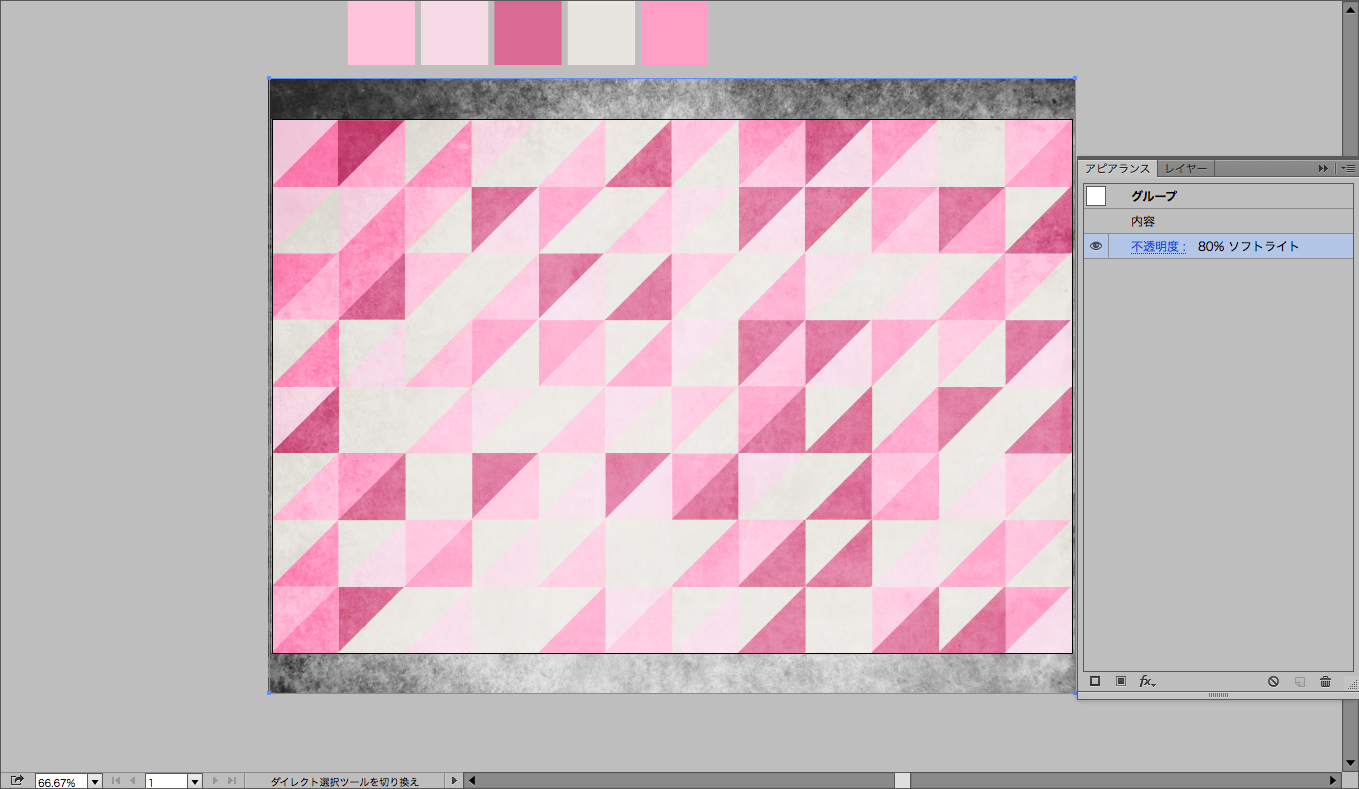 それでは、色を追加しましょう。まず、作業するためのベースとなるパレットが必要です。ここでは、ピンクを中心としたカラー選びました。