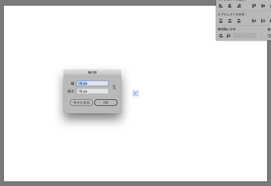 シェイプツールで18ピクセル×18ピクセルの正円を描きます。