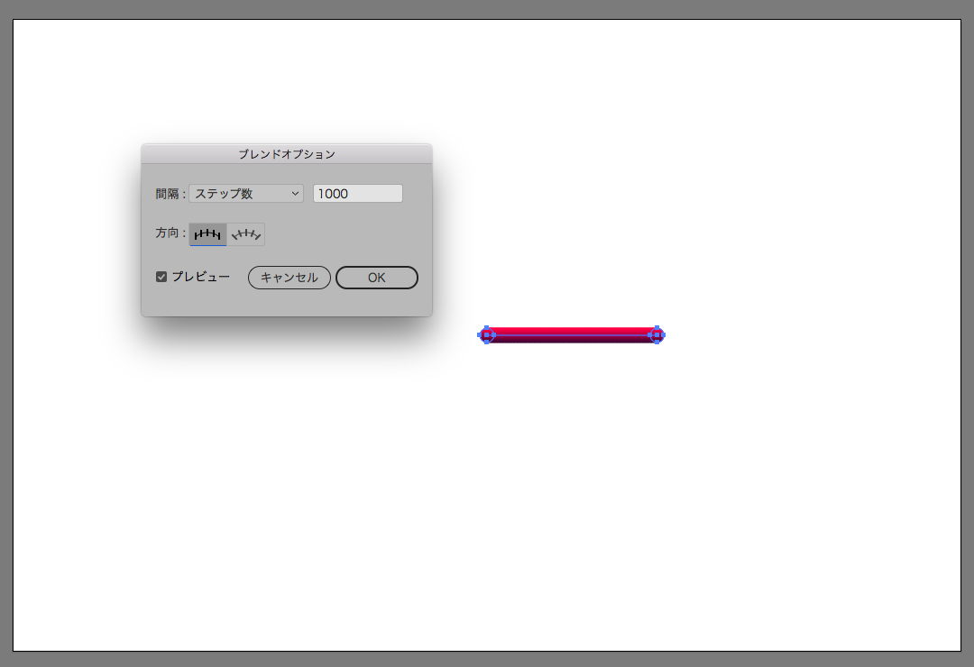ブレンドツールに切り替え、2つの円をクリックし、図のようにブレンドオプションを設定します。