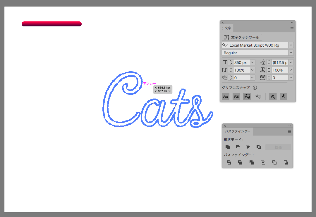パスファインダーで合体を選択し、フォントの途切れている部分を繋ぎます。