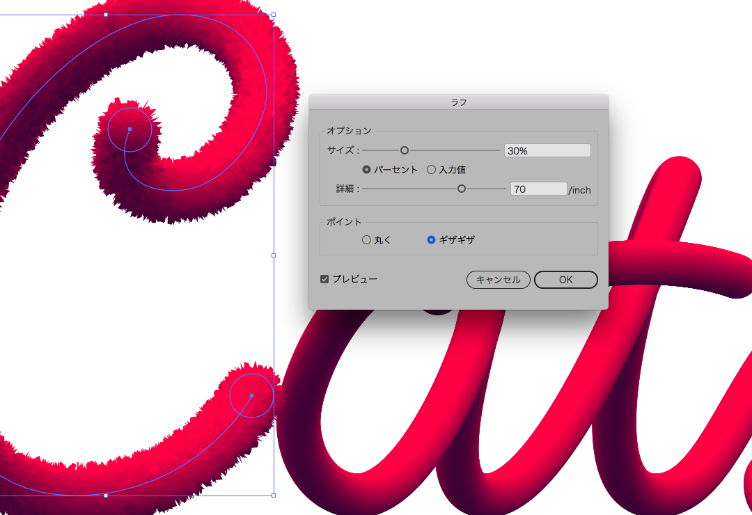 テキスト以外でもふっさふさの表現をIllustratorで出したいときに使えそうですね。