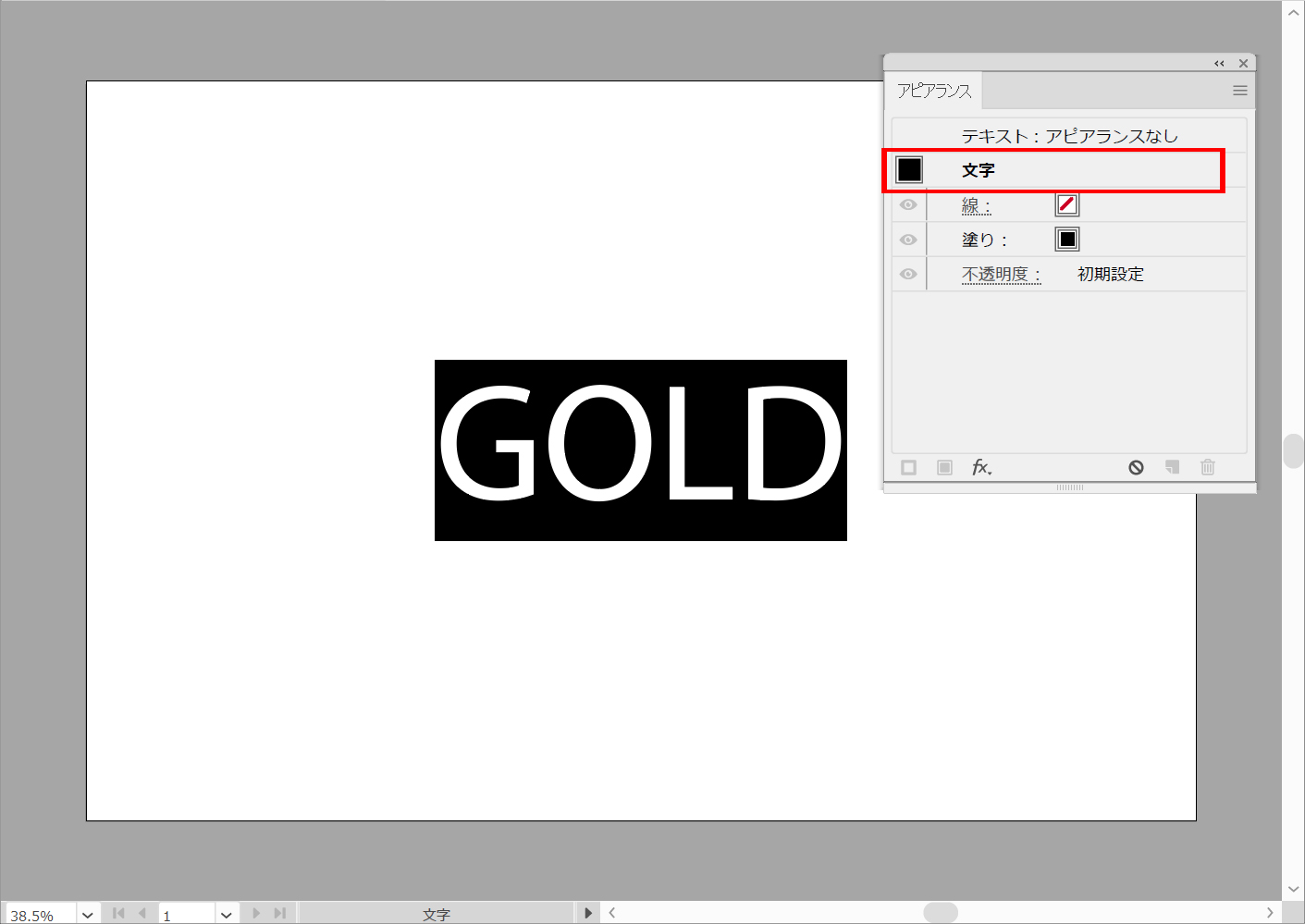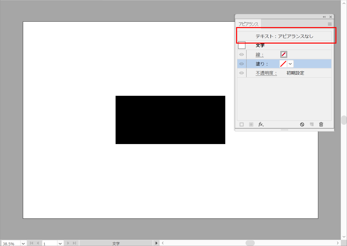 いったんテキストが消えます。「テキスト:アピアランスなし」をダブルクリックします。