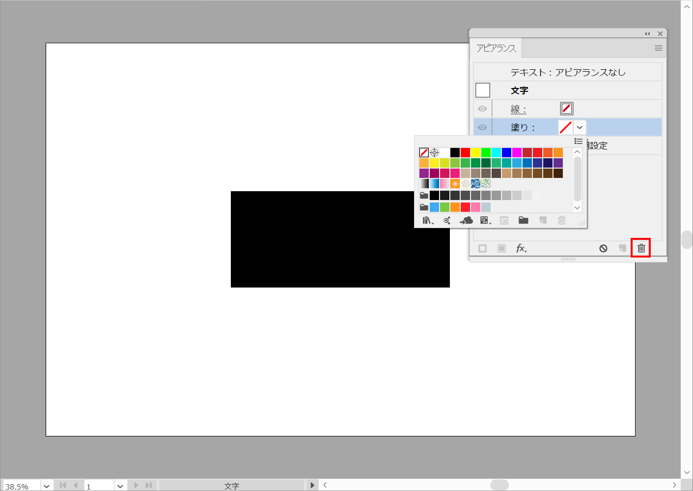 パネルで塗りつぶし属性を選択し、ゴミ箱アイコンをクリックして削除します。