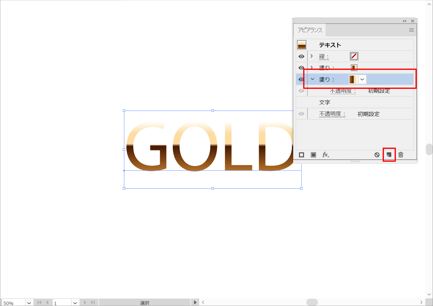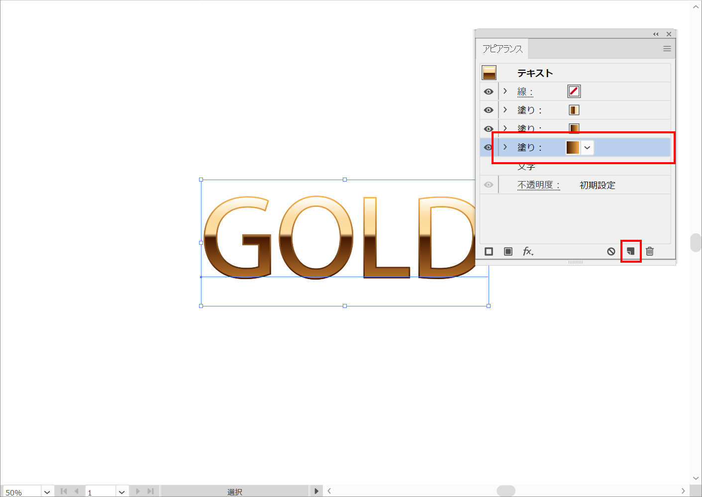 アピアランスパネルの「選択した項目の複製」ボタンをクリックして、一番下の項目を選択します。