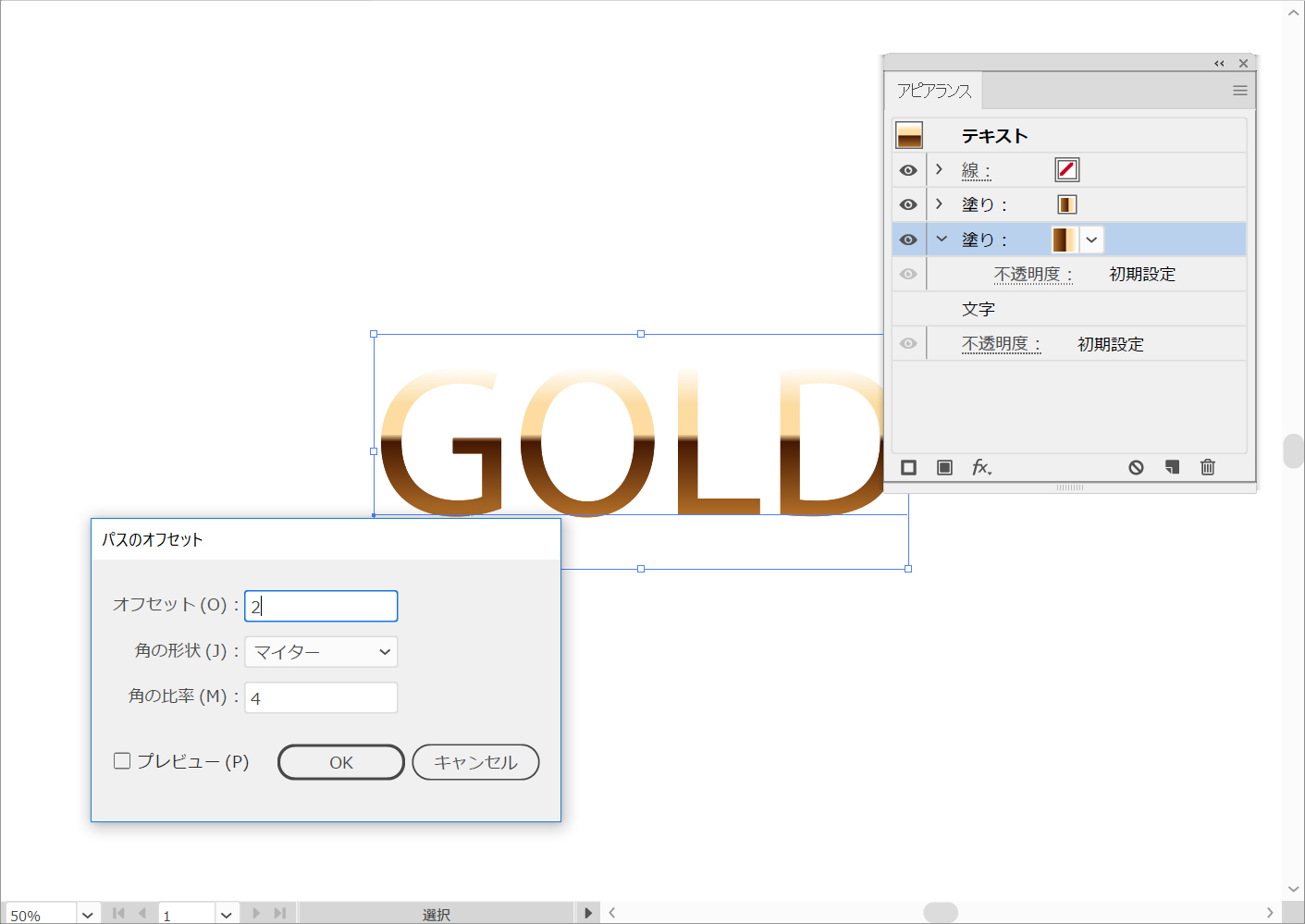 ゴールドテキスト効果の作り方