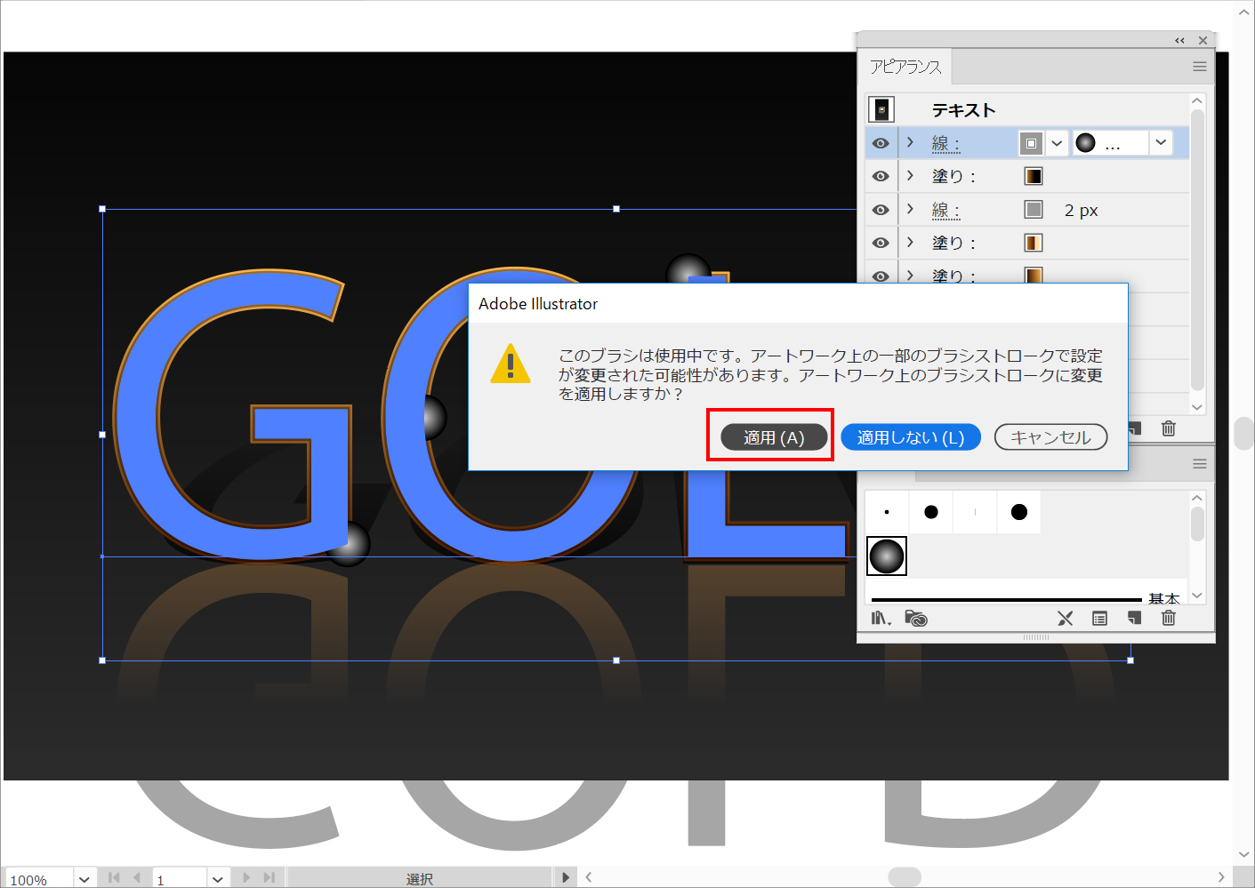 ダイアログボックスで「適用(A)」をクリックします。