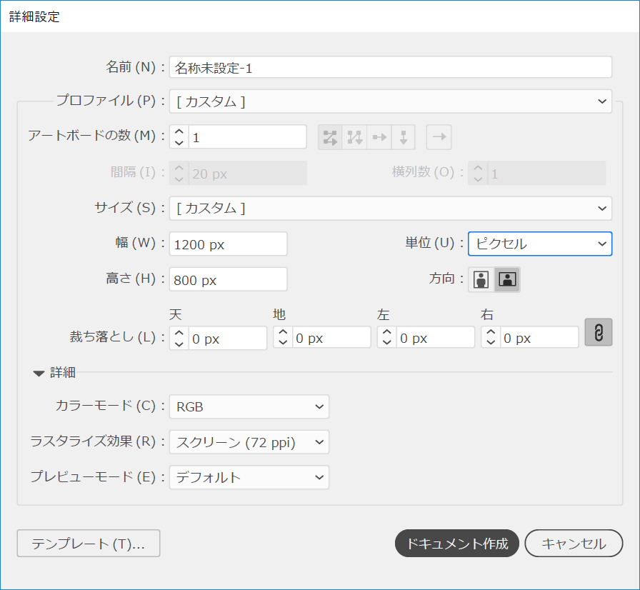 Illustratorを起動し、ファイル>新規作成に移動します。ゴールドテキスト効果の作業を開始します。開いたダイアログボックスでRGBカラーモードを選択します。グラフィックスタイルを作成するため、アートボードのサイズは気にしなくて大丈夫です。